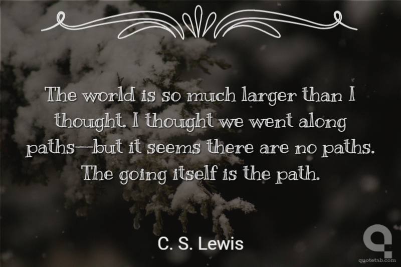 The world is so much larger than I thought. I thought we went along paths--but it seems there are no paths. The going itself is the path. C. S. Lewis