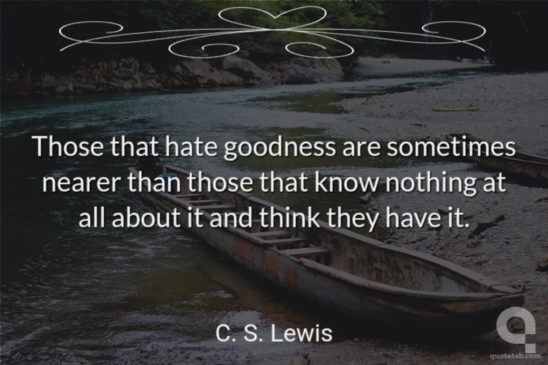Those that hate goodness are sometimes nearer than those that know nothing at all about it and think they have it. C. S. Lewis