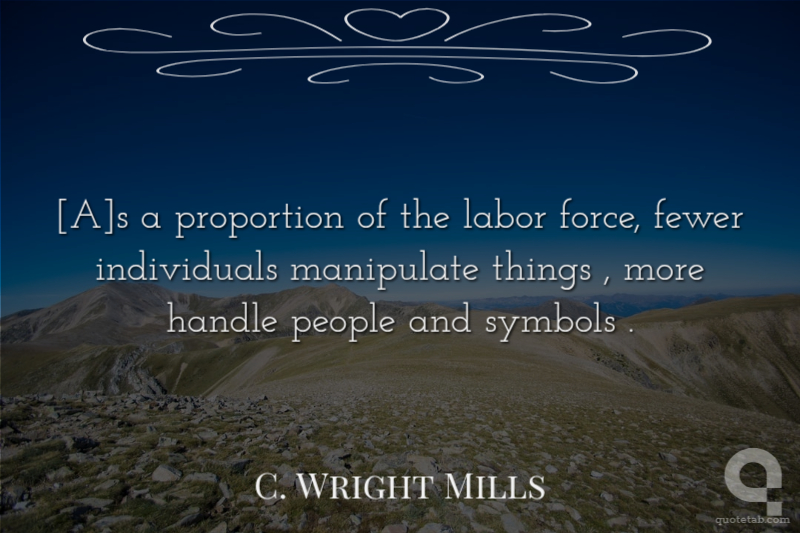[A]s a proportion of the labor force, fewer individuals manipulate things , more handle people and symbols . C. Wright Mills