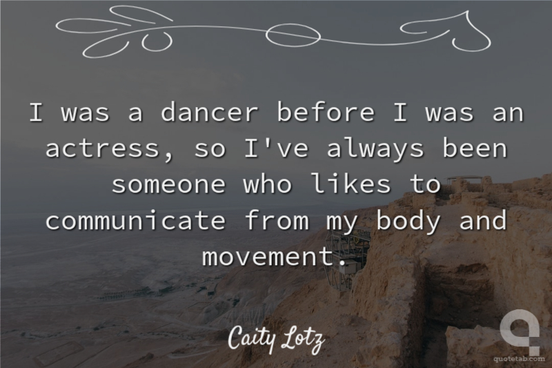 I was a dancer before I was an actress, so I've always been someone who likes to communicate from my body and movement. Caity Lotz