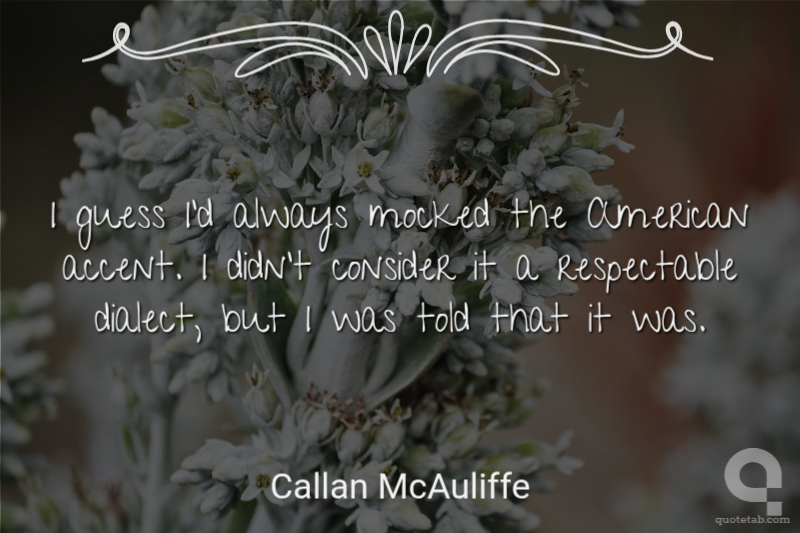 I guess I'd always mocked the American accent. I didn't consider it a respectable dialect, but I was told that it was. Callan McAuliffe