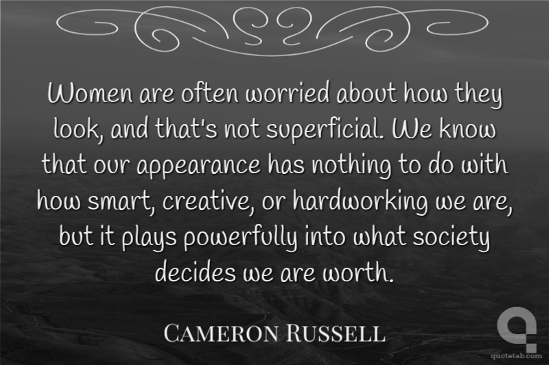 Women are often worried about how they look, and that's not superficial. We know that our appearance has nothing to do with how smart, creative, or hardworking we are, but it plays powerfully into what society decides we are worth. Cameron Russell