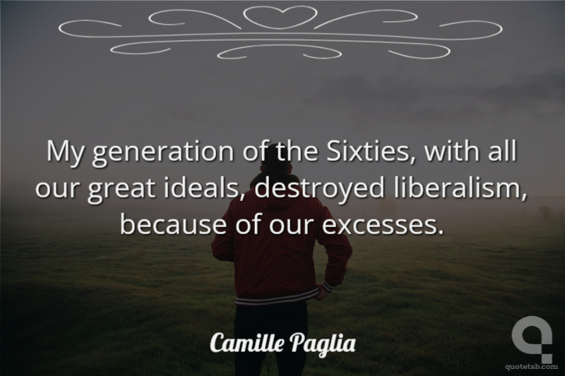 My generation of the Sixties, with all our great ideals, destroyed liberalism, because of our excesses. Camille Paglia
