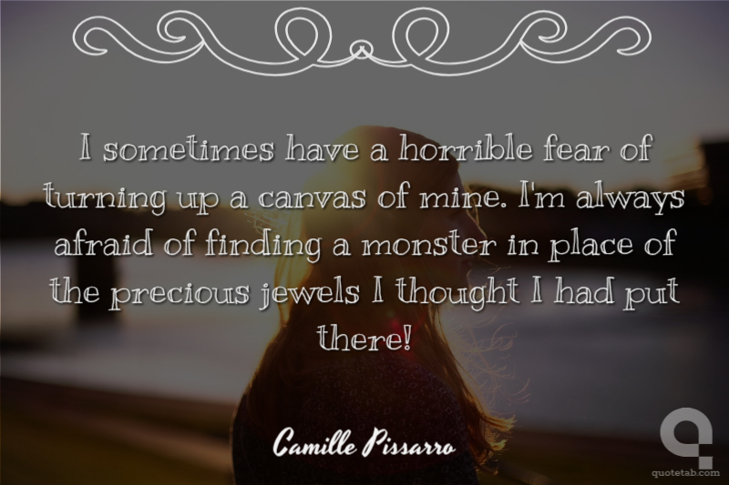 I sometimes have a horrible fear of turning up a canvas of mine. I'm always afraid of finding a monster in place of the precious jewels I thought I had put there! Camille Pissarro