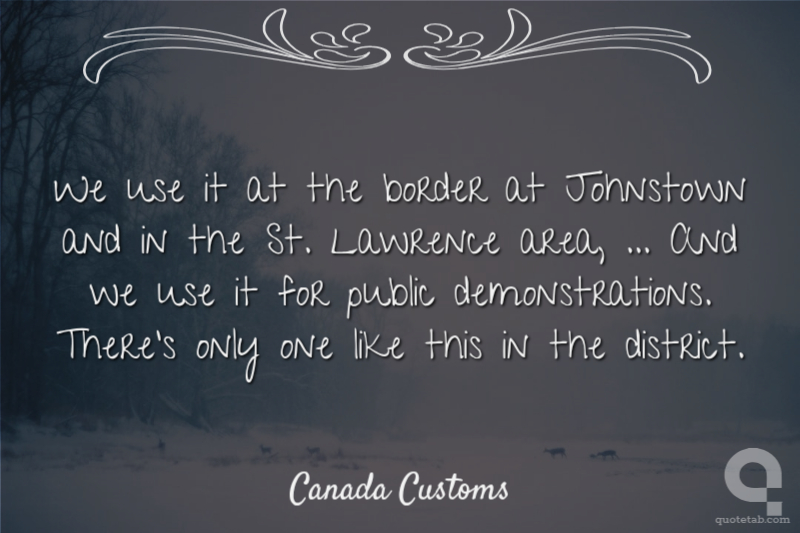 We use it at the border at Johnstown and in the St. Lawrence area, ... And we use it for public demonstrations. There's only one like this in the district. Canada Customs