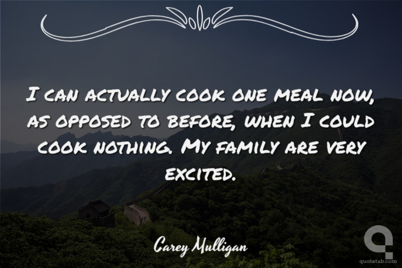 I can actually cook one meal now, as opposed to before, when I could cook nothing. My family are very excited. Carey Mulligan