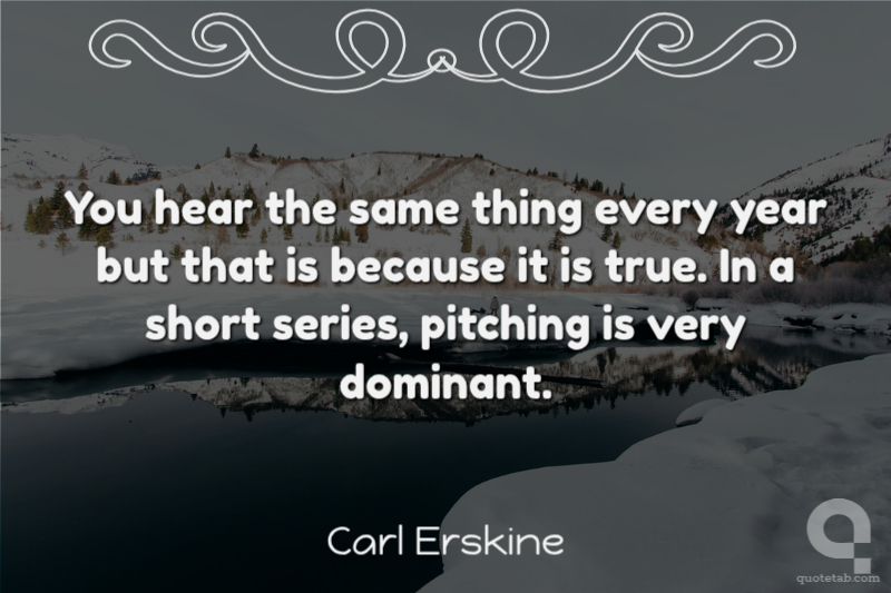 You hear the same thing every year but that is because it is true. In a short series, pitching is very dominant. Carl Erskine
