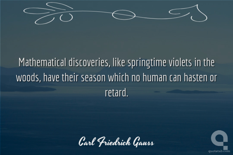 Mathematical discoveries, like springtime violets in the woods, have their season which no human can hasten or retard. Carl Friedrich Gauss