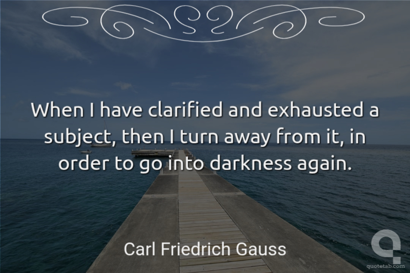 When I have clarified and exhausted a subject, then I turn away from it, in order to go into darkness again. Carl Friedrich Gauss