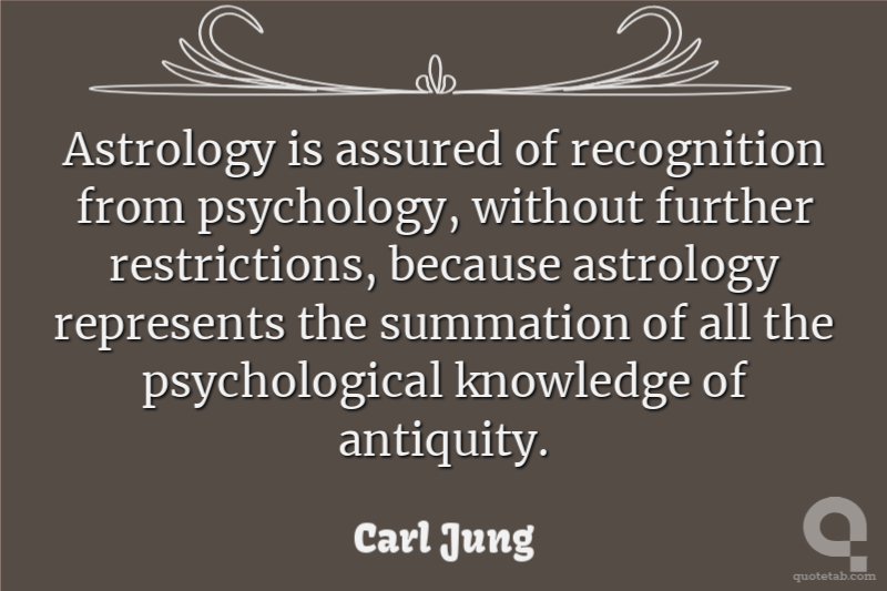 Astrology is assured of recognition from psychology, without further restrictions, because astrology represents the summation of all the psychological knowledge of antiquity. Carl Jung