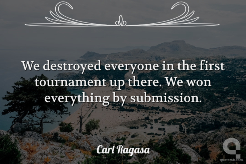 We destroyed everyone in the first tournament up there. We won everything by submission. Carl Ragasa