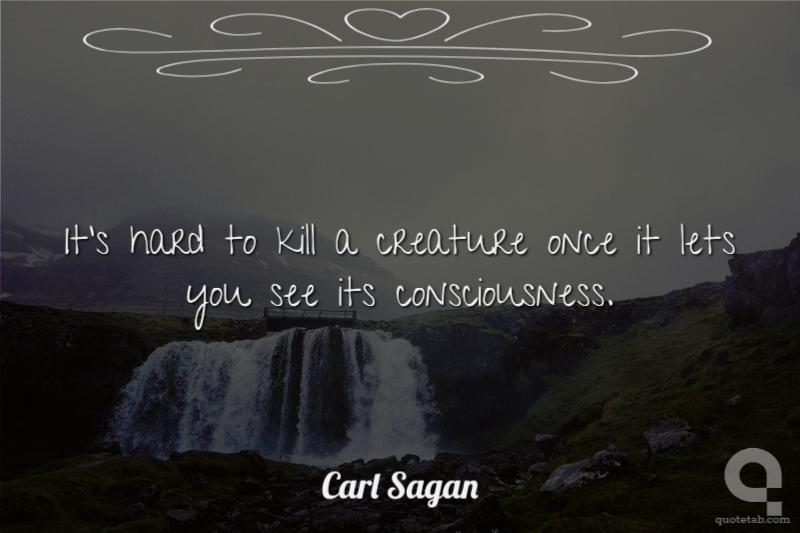 It's hard to kill a creature once it lets you see its consciousness. Carl Sagan