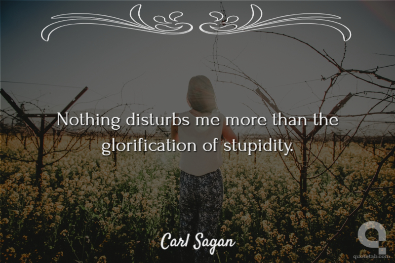 Nothing disturbs me more than the glorification of stupidity. Carl Sagan