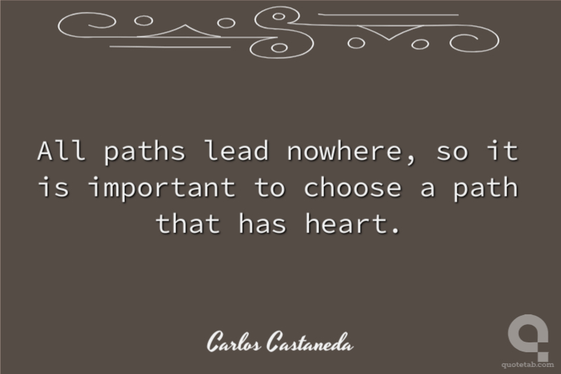 All paths lead nowhere, so it is important to choose a path that has heart. Carlos Castaneda