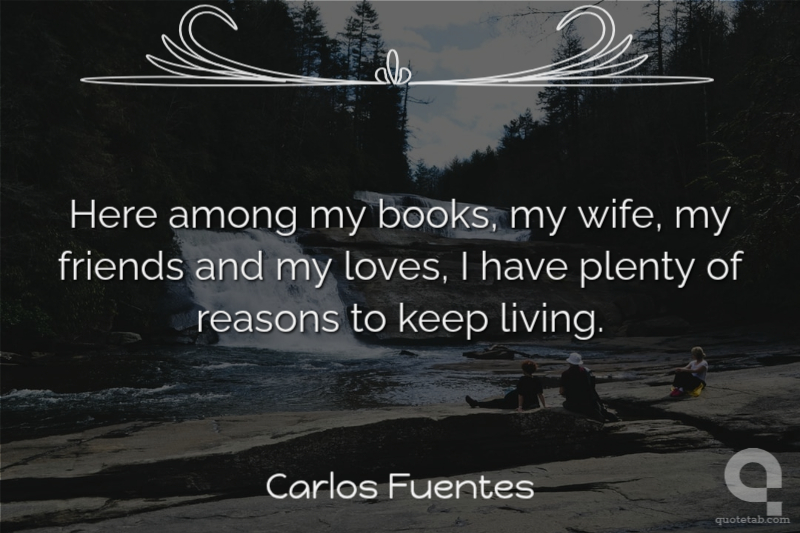 Here among my books, my wife, my friends and my loves, I have plenty of reasons to keep living. Carlos Fuentes