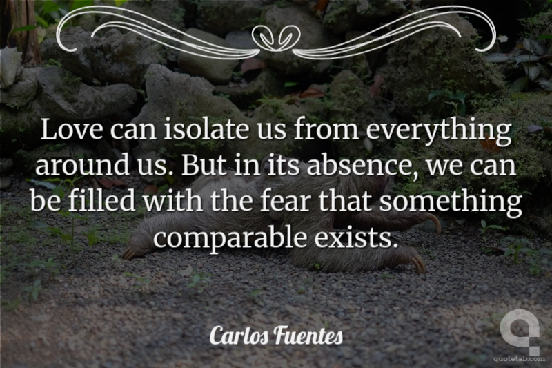 Love can isolate us from everything around us. But in its absence, we can be filled with the fear that something comparable exists. Carlos Fuentes