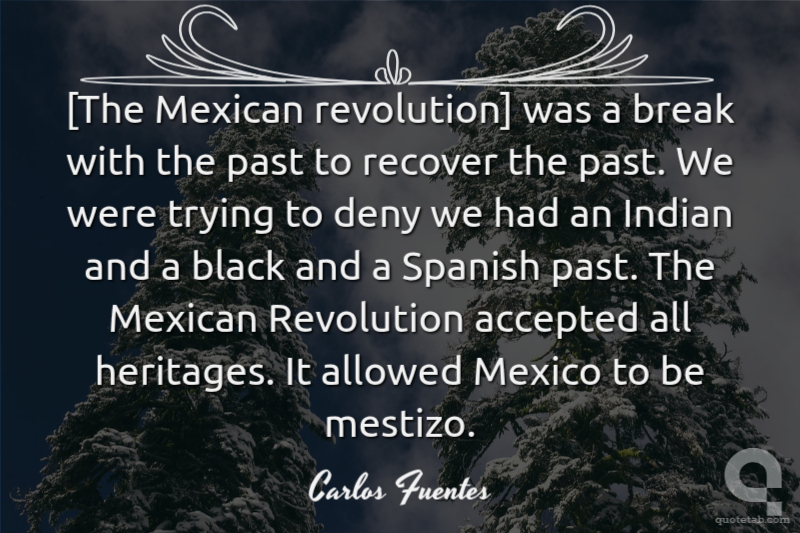 [The Mexican revolution] was a break with the past to recover the past. We were trying to deny we had an Indian and a black and a Spanish past. The Mexican Revolution accepted all heritages. It allowed Mexico to be mestizo. Carlos Fuentes