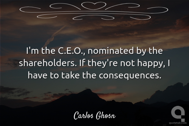 I'm the C.E.O., nominated by the shareholders. If they're not happy, I have to take the consequences. Carlos Ghosn