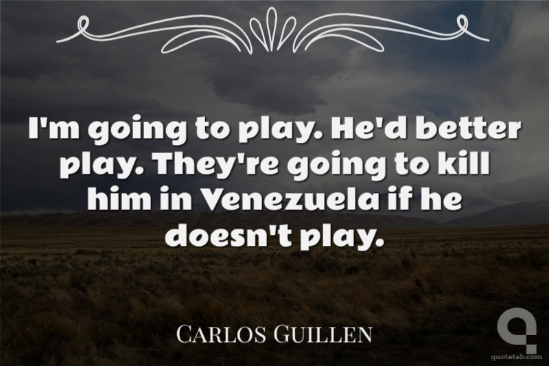 I'm going to play. He'd better play. They're going to kill him in Venezuela if he doesn't play. Carlos Guillen
