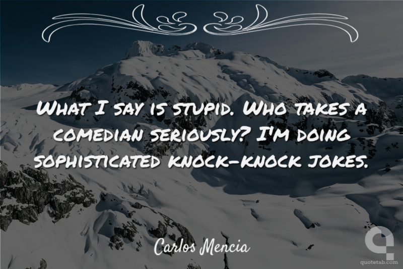 What I say is stupid. Who takes a comedian seriously? I'm doing sophisticated knock-knock jokes. Carlos Mencia
