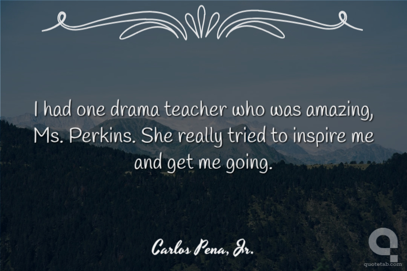 I had one drama teacher who was amazing, Ms. Perkins. She really tried to inspire me and get me going. Carlos Pena, Jr.