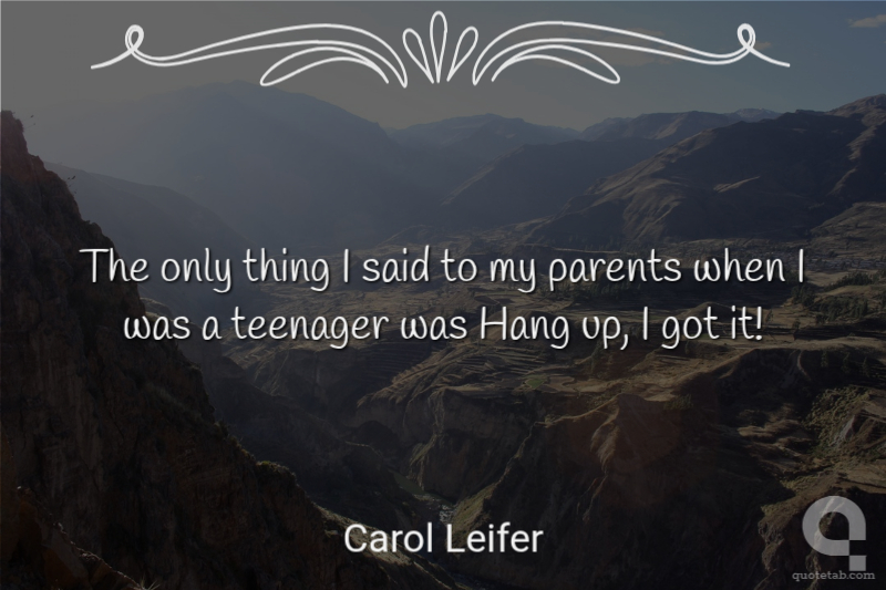 The only thing I said to my parents when I was a teenager was Hang up, I got it! Carol Leifer