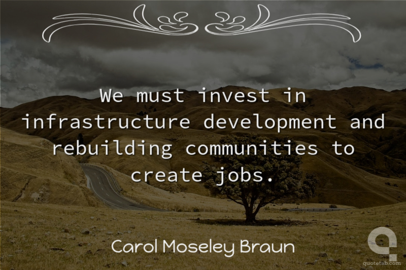 We must invest in infrastructure development and rebuilding communities to create jobs. Carol Moseley Braun