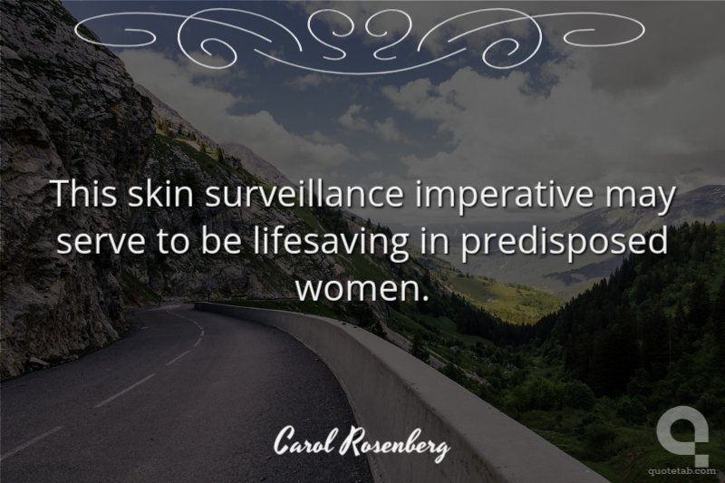 This skin surveillance imperative may serve to be lifesaving in predisposed women. Carol Rosenberg