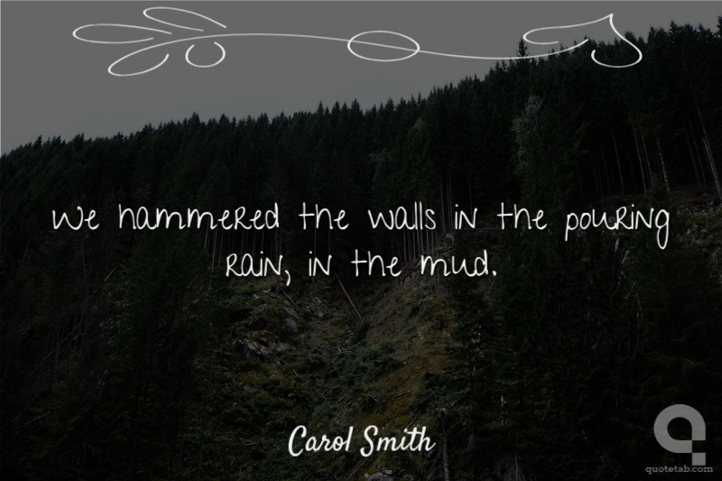 We hammered the walls in the pouring rain, in the mud. Carol Smith