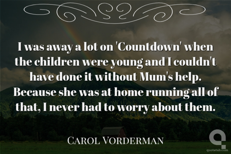 I was away a lot on 'Countdown' when the children were young and I couldn't have done it without Mum's help. Because she was at home running all of that, I never had to worry about them. Carol Vorderman