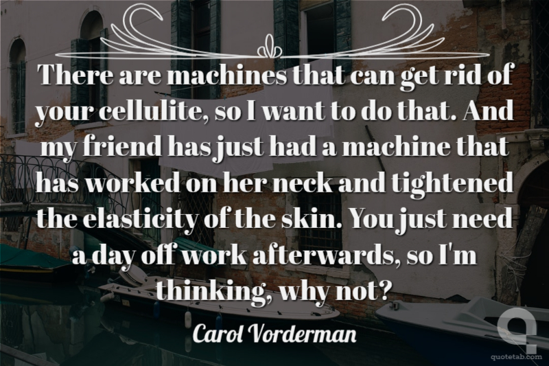 There are machines that can get rid of your cellulite, so I want to do that. And my friend has just had a machine that has worked on her neck and tightened the elasticity of the skin. You just need a day off work afterwards, so I'm thinking, why not? Carol Vorderman