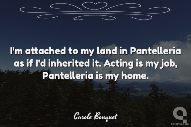 I'm attached to my land in Pantelleria as if I'd inherited it. Acting is my job, Pantelleria is my home. Carole Bouquet