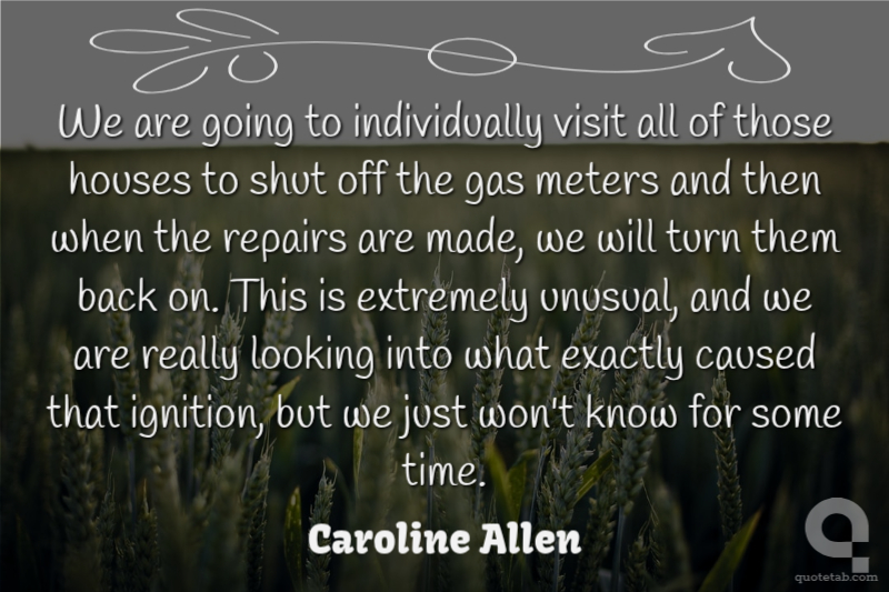 We are going to individually visit all of those houses to shut off the gas meters and then when the repairs are made, we will turn them back on. This is extremely unusual, and we are really looking into what exactly caused that ignition, but we just won't know for some time. Caroline Allen