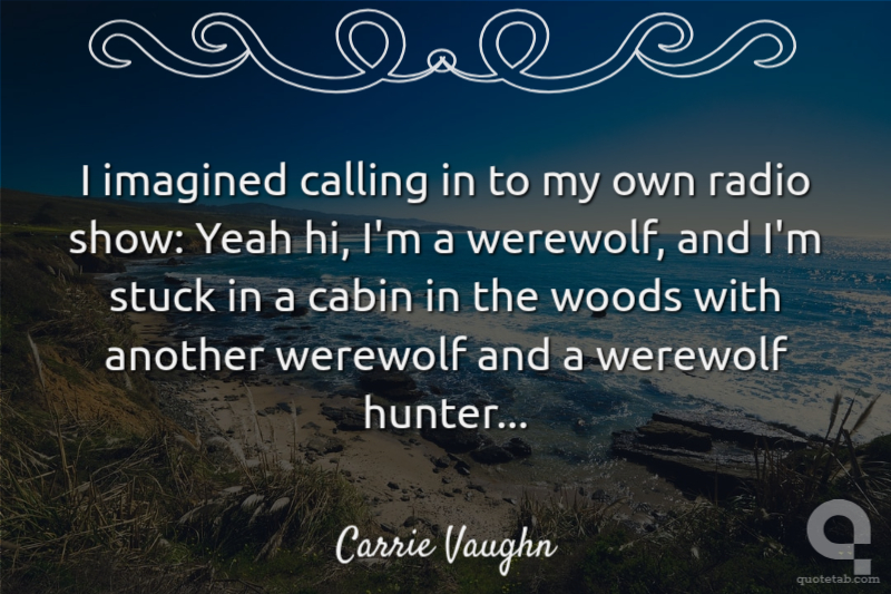 I imagined calling in to my own radio show: Yeah hi, I'm a werewolf, and I'm stuck in a cabin in the woods with another werewolf and a werewolf hunter... Carrie Vaughn