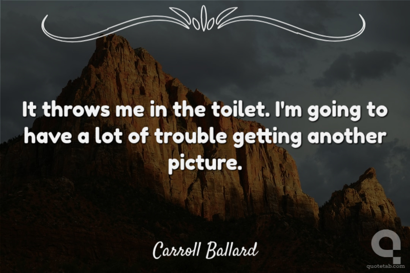 It throws me in the toilet. I'm going to have a lot of trouble getting another picture. Carroll Ballard