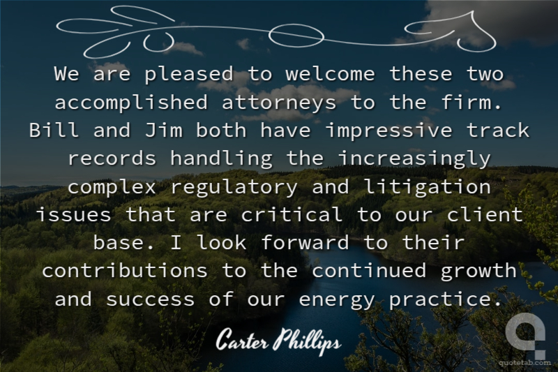 We are pleased to welcome these two accomplished attorneys to the firm. Bill and Jim both have impressive track records handling the increasingly complex regulatory and litigation issues that are critical to our client base. I look forward to their contributions to the continued growth and success of our energy practice. Carter Phillips