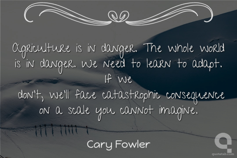 Agriculture is in danger. The whole world is in danger. We need to learn to adapt. If we don't, we'll face catastrophic consequence on a scale you cannot imagine. Cary Fowler