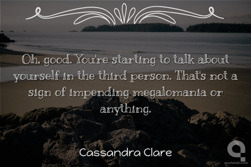 Oh, good. You're starting to talk about yourself in the third person. That's not a sign of impending megalomania or anything. Cassandra Clare