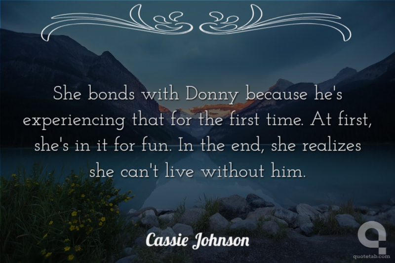 She bonds with Donny because he's experiencing that for the first time. At first, she's in it for fun. In the end, she realizes she can't live without him. Cassie Johnson
