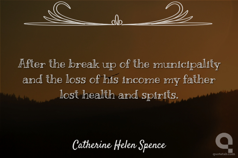 After the break up of the municipality and the loss of his income my father lost health and spirits. Catherine Helen Spence