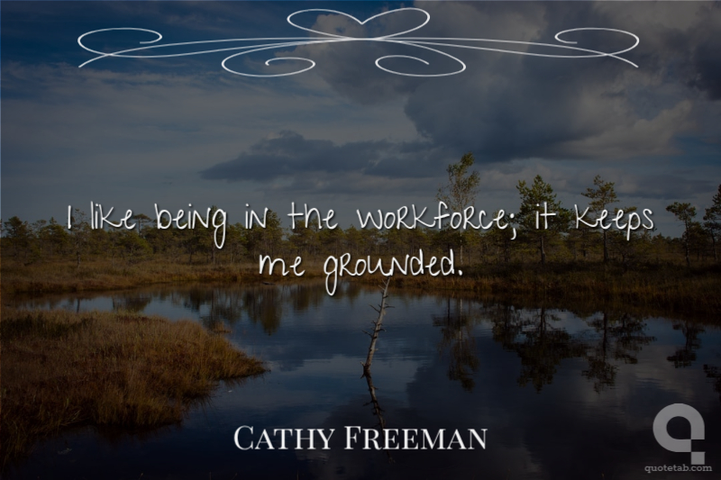 I like being in the workforce; it keeps me grounded. Cathy Freeman