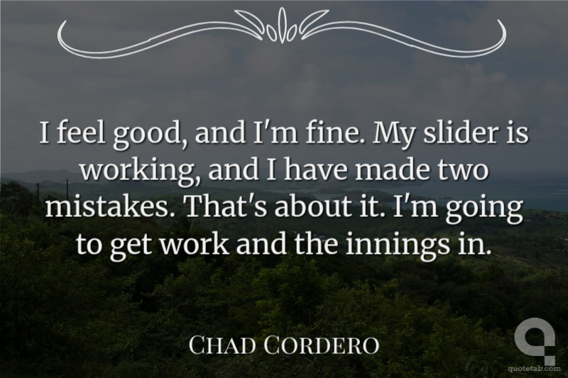 I feel good, and I'm fine. My slider is working, and I have made two mistakes. That's about it. I'm going to get work and the innings in. Chad Cordero