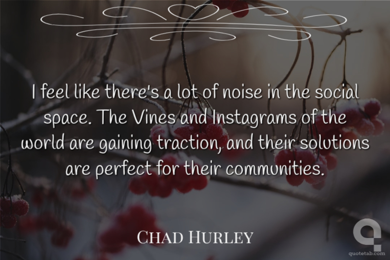 I feel like there's a lot of noise in the social space. The Vines and Instagrams of the world are gaining traction, and their solutions are perfect for their communities. Chad Hurley