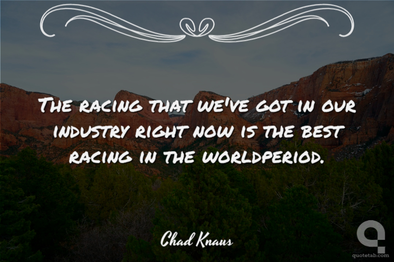 The racing that we've got in our industry right now is the best racing in the worldperiod. Chad Knaus