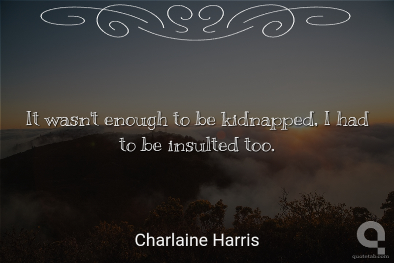 It wasn't enough to be kidnapped, I had to be insulted too. Charlaine Harris