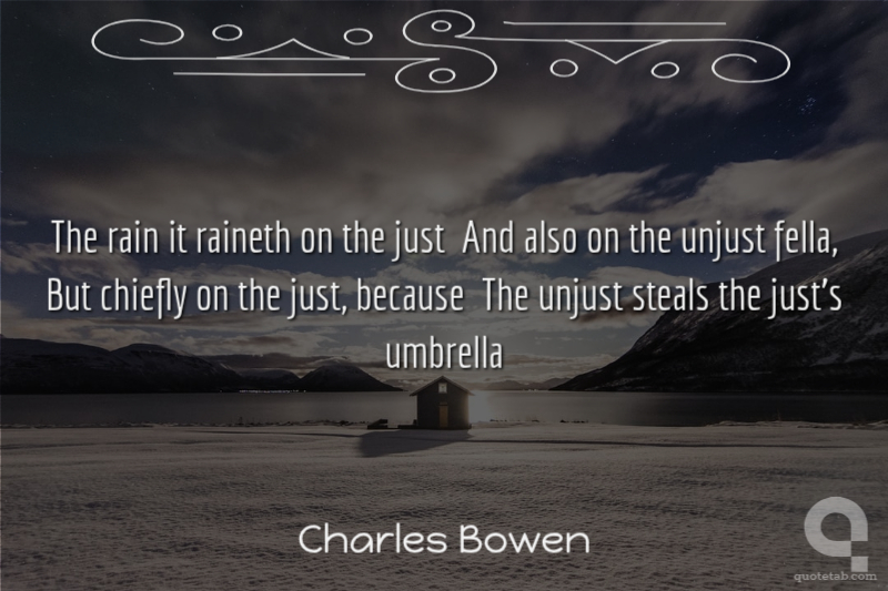 The rain it raineth on the just And also on the unjust fella, But chiefly on the just, because The unjust steals the just's umbrella Charles Bowen