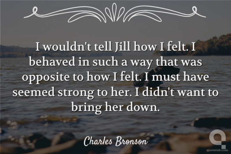 I wouldn't tell Jill how I felt. I behaved in such a way that was opposite to how I felt. I must have seemed strong to her. I didn't want to bring her down. Charles Bronson