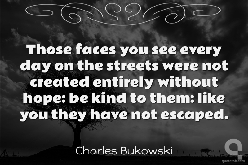 Those faces you see every day on the streets were not created entirely without hope: be kind to them: like you they have not escaped. Charles Bukowski