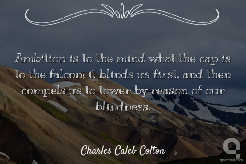 Ambition is to the mind what the cap is to the falcon; it blinds us first, and then compels us to tower by reason of our blindness. Charles Caleb Colton