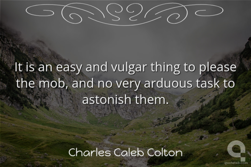 It is an easy and vulgar thing to please the mob, and no very arduous task to astonish them. Charles Caleb Colton